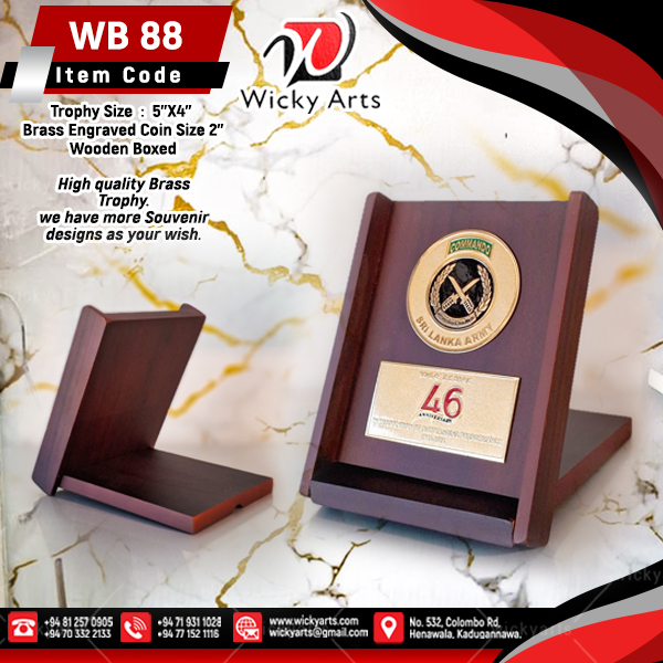 Brass Engraved Coin and Brass Engraved Plate Fixed to Wooden Box Plaque